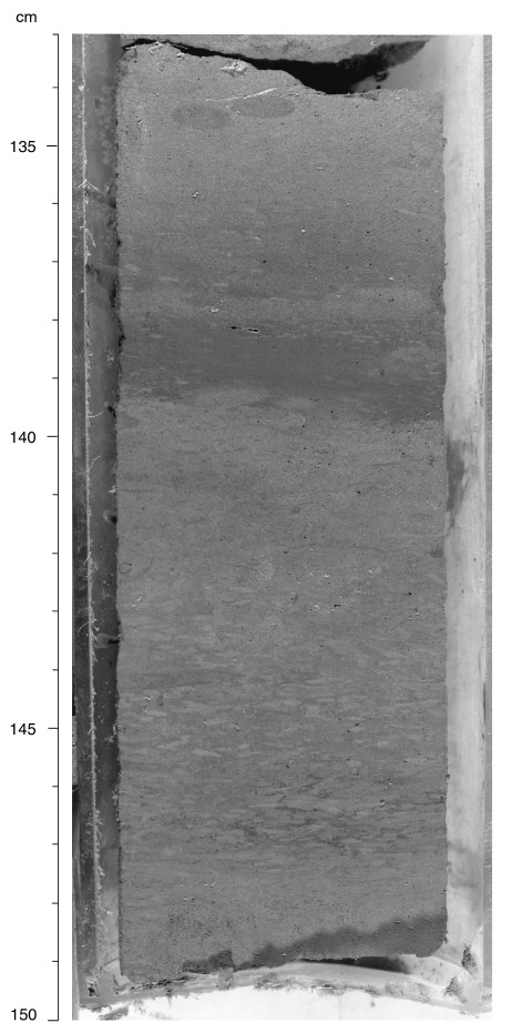 Figure F6. Condensed and flattened burrows of Chondrites within a bioclastic packstone from Unit II (interval 182-1129D-9R-1, 133-150 cm).