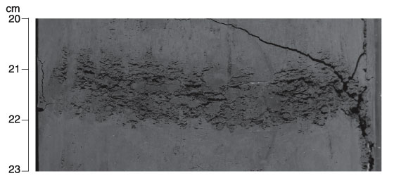 Green clay layer (interval 184-1143C-5H-3, 20-23 cm [38.10-38.13 mbsf; 39.76-39.79 mcd]).