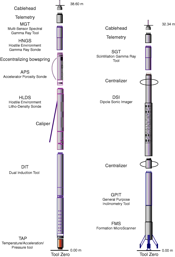 Figure F8. Configuration of the wireline logging tool strings that were used during Expedition 303.
