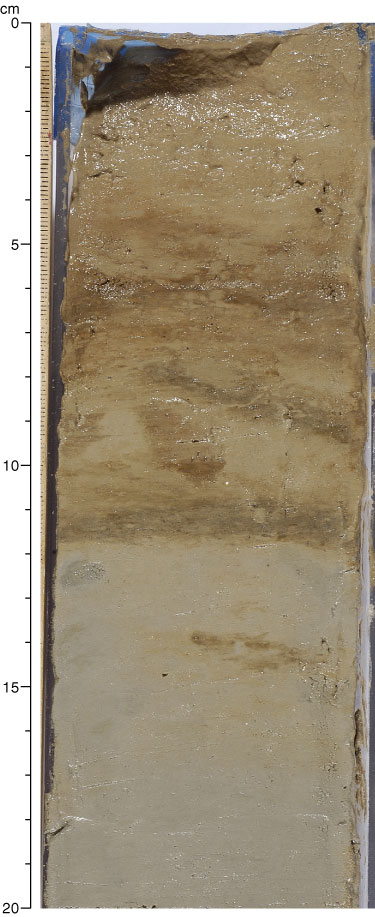 Figure F12. Oxidized layer at the uppermost part of Subunit IA (interval 303-U1302E-1H-1, 0–20 cm).