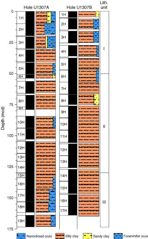 Figure F4. Graphic summary of the lithologies recovered at Site U1307.