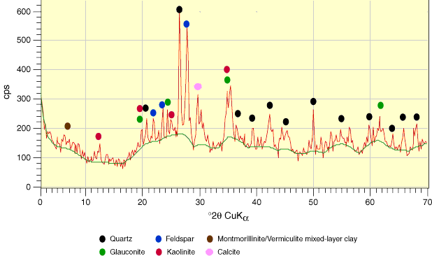 Figure F8. X-ray diffractogram for Sample 306-U1314A-1H-1, 140–141 cm.