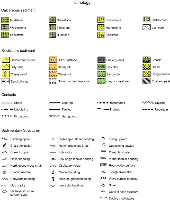 Figure F4. Key to symbols used in core description forms. (Continued on next two pages.)