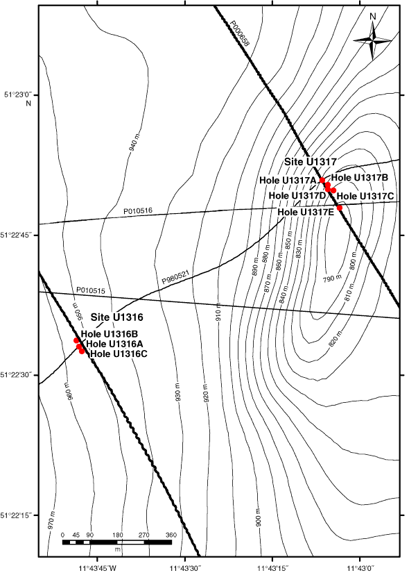 Figure F1. Multibeam bathymetry (Beyer et al., 2003), showing location of Site U1316.