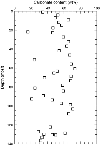 Figure F18. Carbonate content vs. depth in Hole U1317A.