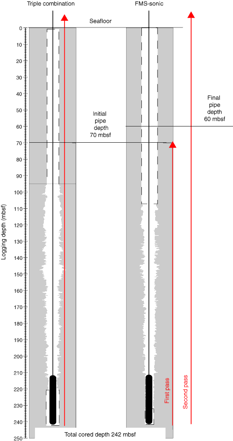 Figure F25. Graphic summary of logging operations in Hole U1318C. FMS = Formation MicroScanner.