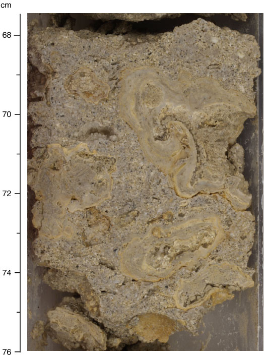 Figure F39. Skeletal rudstone with rhodoliths (Subunit IIB; interval 310-M0005D-10R-1, 68–76 cm).