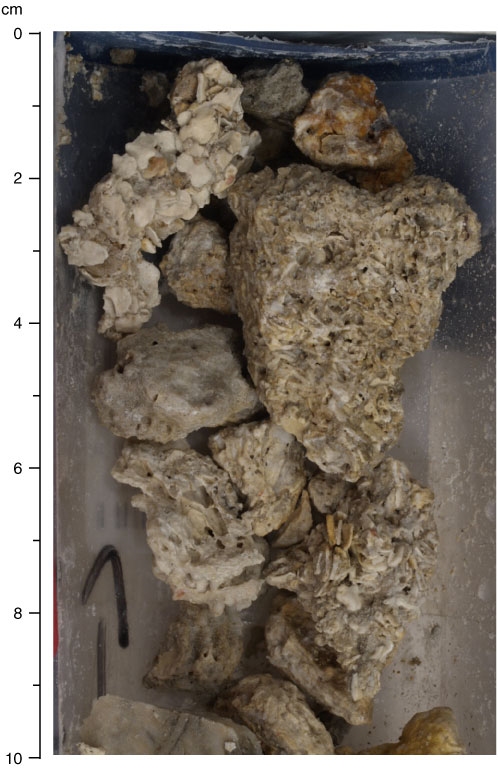 Figure F4. Grainstone rich in Halimeda segments (Unit I; interval 310-M0005C-11R-1, 0–10 cm).