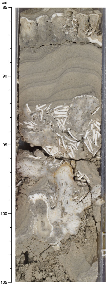 Figure F22. Robust branching colonies of Pocillopora (Subunit IB; interval 310-M0015B-21R-1, 85–105 cm).