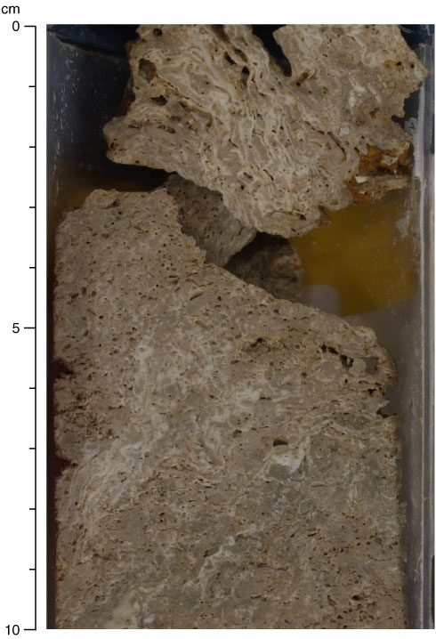 Figure F3. Top of Subunit IA (Subunit IA; interval 310-M0015B-1R-1, 0–10 cm). Note extensive bioerosion of sediment.
