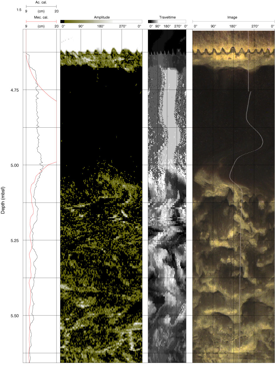 Figure F17. Wireline logging data, Hole M0023B. Ac. cal. = acoustic caliper derived from ABI40, Mec. cal. = mechanical caliper. (See the “DOWNHOLE” folder in “Supplementary Material” for the complete multipart figure in PDF format.)