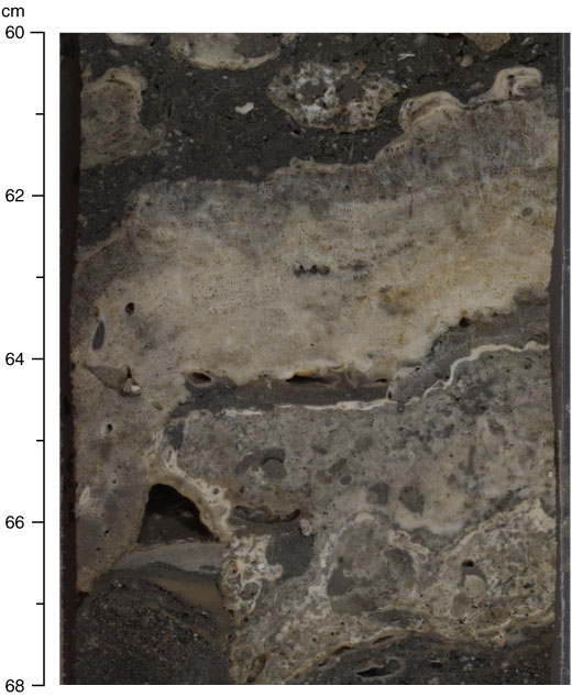 Figure F44. Coral framework of encrusting colonies of Montipora (Unit II; interval 310-M0021B-20R-1, 60–68 cm).