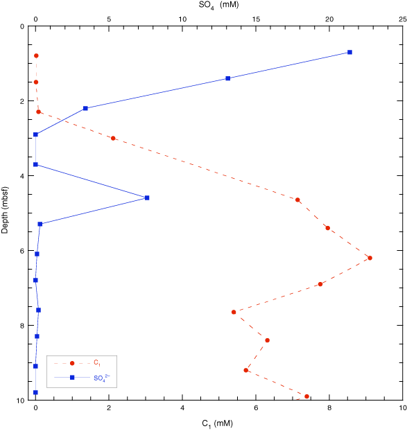 Figure F29. Dissolved sulfate and methane concentrations from Site U1326.