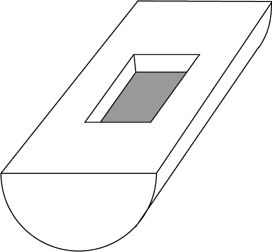 Figure F1. Schematic of the area of thin sections within half-round samples. Shaded area = area for thin sections.